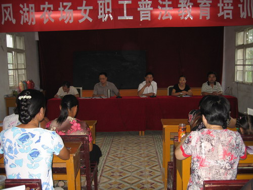 8月25日,东风湖农场举办女职工普法教育培训班,来自全场各条战线的近50名女职工代表参加了这次普法培训。培训班由凤台县妇联和县司法部门、计生部门主要负责人亲自授课,主要学习了《中华人民共和国妇女权益保障法》、《安徽省计划生育条例,并通过生活中的实例号召广大女性朋友如何正确运用法律武器去维护自己的合法权益,使自己的合法权益得到保护。同时,场女工委还请来了医院妇产科医生,就女性的生理、身体保健知识进行了专题讲解。