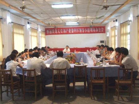 8月30日上午,怀远县龙亢农场集中区领导小组第一次现场办公会在龙亢农场大会议室召开。怀远县发改委、财政局、土地局、劳动局、建设局、行政服务中心、农委、工商局、国税局等直属各单位负责人、龙亢农场周边乡镇负责人、龙亢农场相关部门人员近30人参加会议,怀远县领导有关领导和龙亢农场领导出席会议。