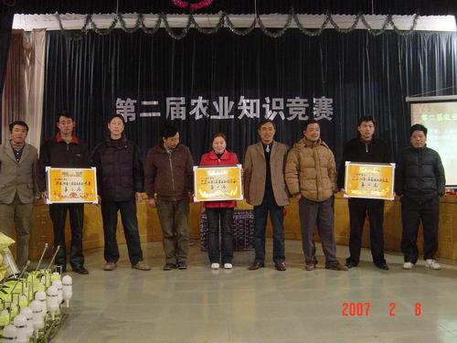 为了宣传、普及农业生产科技知识,促进职工不断加强业务理论知识学习和应用,以提高农场科学种田整体水平,为粮食产量再攀新高夯实基础。2月8日下午,大圹圩农场工会和场农技推广服务中心在场部大礼堂举办了“第二届农业知识竞赛”活动。7个农业分场分别组织代表队积极参赛。各农业单位主管、农业技术员、2006年度农场水稻高产户、部分农业职工一百多人到场观看、学习。