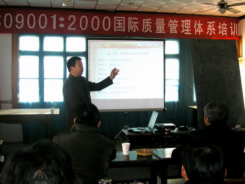 1月28日上午,安徽中科质量认证咨询公司的培训人员正在潘村湖农场场部四楼会议室讲授ISO9001:2000国际质量管理体系知识。