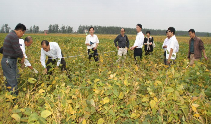 26日下午,参加国审科豆1号现场鉴定会的各位专家,深入龙亢农场现代农业高科技示范园区,观摩了大豆品种展示,详细查看了国审科豆1号大田长势,并对其进行了实收测产。观摩中,王占廷与马七军就加强科企合作、推动农业科技创新进行了深入交流。