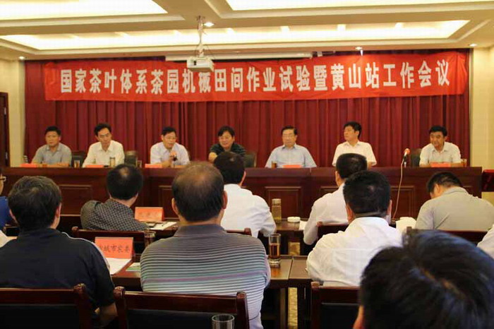 825国家茶叶体系茶园机械田间作业试验暨黄山站工作会议在安徽农垦十字铺茶场隆重举行。中国工程院院士、中国农科院茶叶研究所研究员陈宗懋,国家茶产业技术首席科学家、中国农科院茶叶研究所所长、研究员杨亚军及栽培研究室、植保研究室全体岗位科学家莅临指导。会议由安徽省农科院茶叶研究所所长、黄山综试站站长周坚主持。宣城市及郎溪县农委领导,黄山市祁门县和歙县农委领导,以及安徽各示范县技术骨干共80多人参加会议。