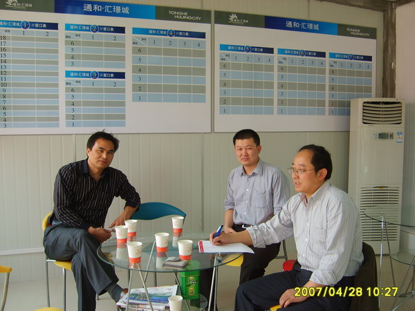 4月28日上午10时58分,通和·汇璟城售楼部在一片鞭炮声中正式开业。该楼盘是由通和公司控股的安徽国投实业公司开发的,位于合肥市史河路41号,开发总面积3万余平方米。一期的1.8万平方米工程建设顺利,已经获得市相关部门的预售证。目前正在火爆销售中。 图为开业时的情景。(项道宏)