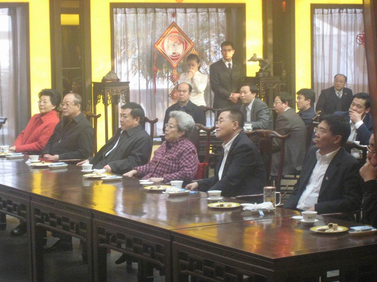 2月22日,国务院副总理吴仪在安徽省委书记王金山、省长王三运、合肥市委书记孙金龙陪同下,来到位于合肥市逍遥津公园内的安徽黄山大厦徽商会馆参观指导工作。安徽黄山大厦徽商会馆坐落于具有浓厚历史背景和文化底蕴的古逍遥津公园“蘧庄”内,集餐饮、休闲、徽文化展示、文物艺术品交流等多功能于一体,也是我省目前唯一一座具有徽文化特色的大型商务会馆。下午4点,吴仪副总理一行在省市领导的陪同下径直来到会馆,兴致盎然地向在旁陪同的黄山大厦有关负责同志详细地询问了徽商会馆的历史由来和相关情况,并不时地点头称赞。随后,吴仪副总理先后参观了红顶堂、徽商厅等会馆场所,并在古茶戏楼与随行的国务院其它部委领导及省市领导一起欣赏了我省著名戏曲演员们的戏曲表演,演员们的精彩表演不时得到在场领导的热烈掌声。