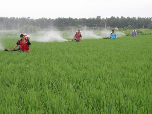 7月29日早晨6点多钟,在大圹圩农场农业第三管理区李铭华承包的50亩水稻田里,几位身背机动弥雾机的家庭农场职工正在赶早凉抓紧打药,今天是他们联手完成最后一户稻田施药任务。在7月26日至29日间,全场各农业单位集中力量,全面开展了一次以综合防治五(三)代稻纵卷叶螟和水稻纹枯病为主要内容的水稻田管工作。