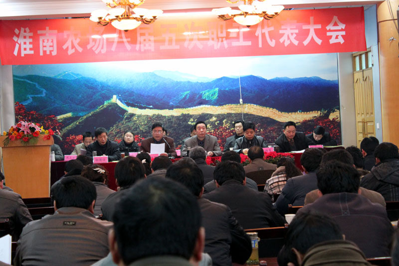 3月5日上午,淮南农场一楼大会议室内灯火通明,花团锦簇,伴随着国歌庄严乐曲的响起,场八届五次职工代表大会在这里隆重开幕。此次职代会共有职工代表76人,列席1人,特邀4人,大家欢聚一堂,履行代表职责,共商发展大计。