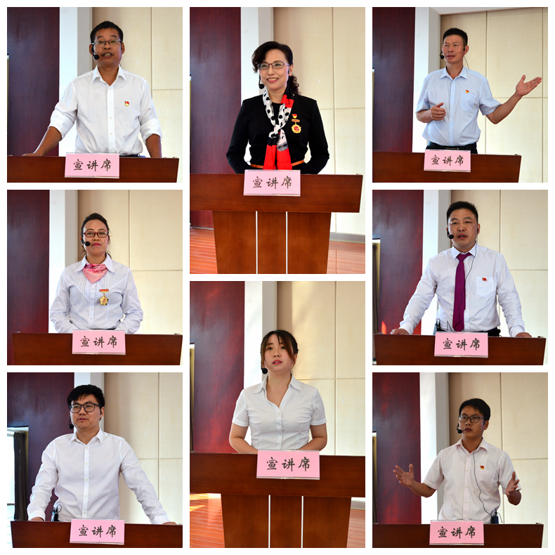 当天上午8:30,“我与祖国共成长、做最美农垦人”主题宣讲活动在农垦集团11楼多功能会议室举办。全国农业先进个人、龙亢农场副场长王永玖以《砥砺前行,让农业插上科技的翅膀》为题,讲述了自己大学毕业后投身农业科研、实施科技报国的经历和感悟,和大家一起分享了奋斗的辛苦与收获;省国资委系统优秀共产党员、华阳河农场一线职工任世平讲述了作为垦二代的创业经历和梦想,全省三八红旗手魏晓丽、全国三八红旗手王献珍回顾了农垦女职工的创业历程和追梦成果;通和地产营销新秀王天成、皖垦种业技术骨干孟凡东、农服公司胡胜友先后分享了农垦职场中的辛勤与成绩。更令人感动的是皖河农场退休干部、关工委主任朱华忠牢记初心使命、身患癌症仍奉献于关心下一代工作一线的先进事迹。他的事迹通过农场大学生黄婷娜的深情宣讲,打动了在座的听众。