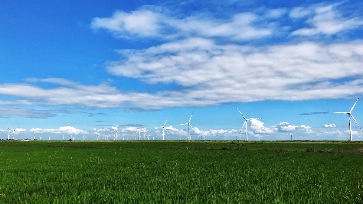 图四:蓝天白云下农场生机勃勃的大地,绿色虾稻产业就是农场的未来。