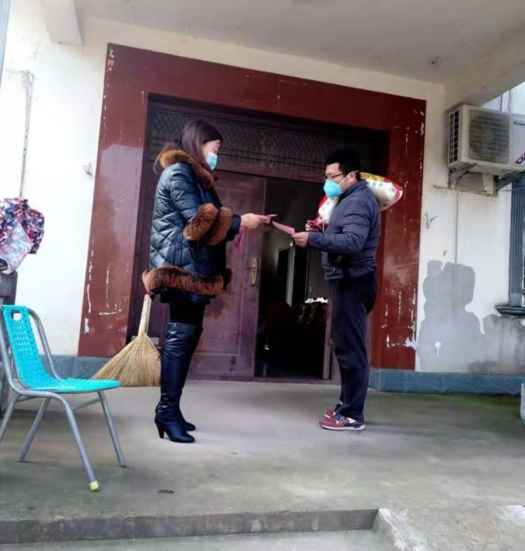 1月29日一大早,刚起床的三益分场职工王建军就听到一阵敲门声,他带上口罩打开门,就见到分场工作人员扛着一大袋米送过来。王建军一家人常年在武汉从事装修工作,一回家就听说要隔离,所以不敢出门。这不,分场工作人员就买好米等生活用品送上门。还有一些邻居,经常把自家种的蔬菜摘好放到他家门口。