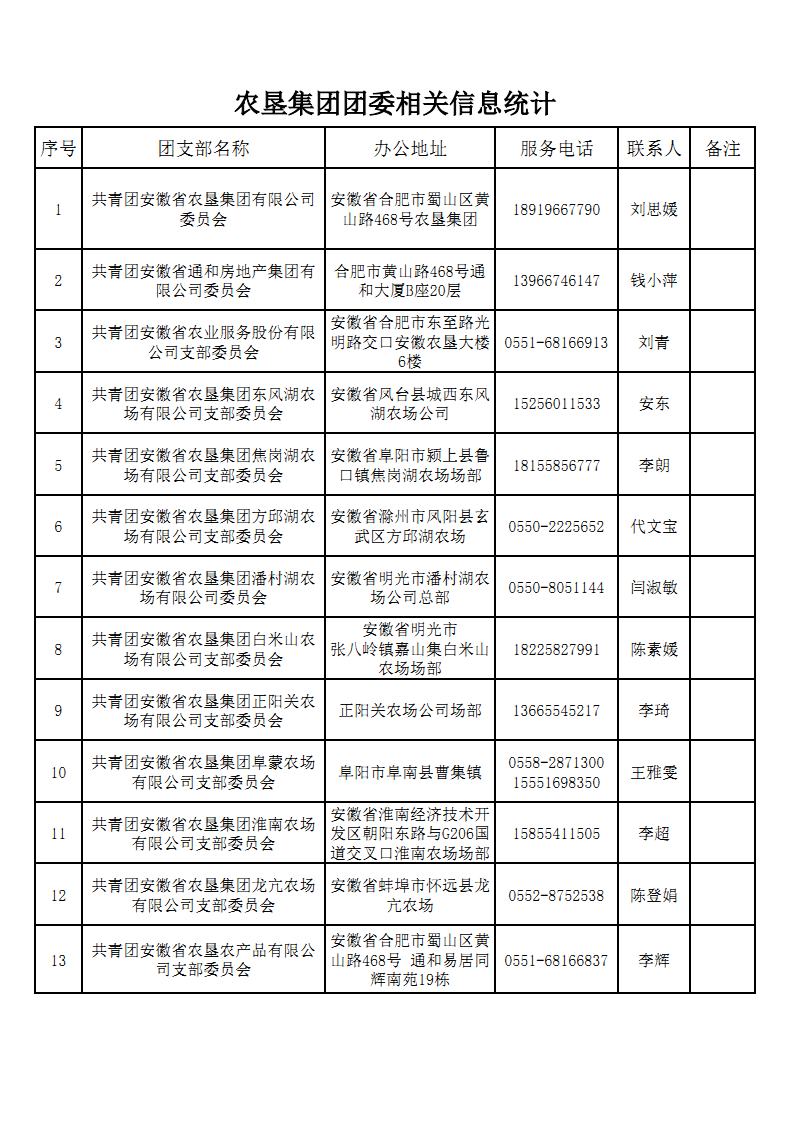农垦集团团委-团组织相关信息