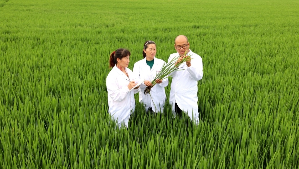 安徽农垦龙亢农场农业科技人员开展水稻农情调研。