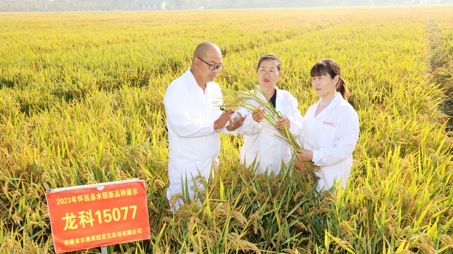 龙亢农场公司作为安徽农垦皖垦种业的水稻育种繁育基地,今年秋季共展示、推广包括“皖垦”牌水稻新品种50多个,举办蚌埠市区域内水稻新品种现场观摩会30多场次,蚌埠市三县四区农业农村局、农技推广中心、种子管理站工作人员以及部分种粮大户等1200多人先后到龙亢农场公司现代农业科技园区进行现场观摩,交流水稻绿色高产栽培技术。展示区内,国审“皖垦糯5号”,省审节水抗旱糯稻“龙科15077”和“皖垦糯1号”等优质粳糯稻表现突出。