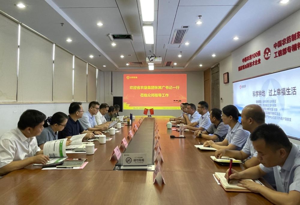 95日,农垦集团党委书记、总经理张其广率队赴安徽众邦生物工程有限公司调研农药研发和生产情况并洽谈合作,集团总农艺师姚礼发陪同。安徽众邦生物董事长黄自云、总经理吴电亮参加座谈交流。