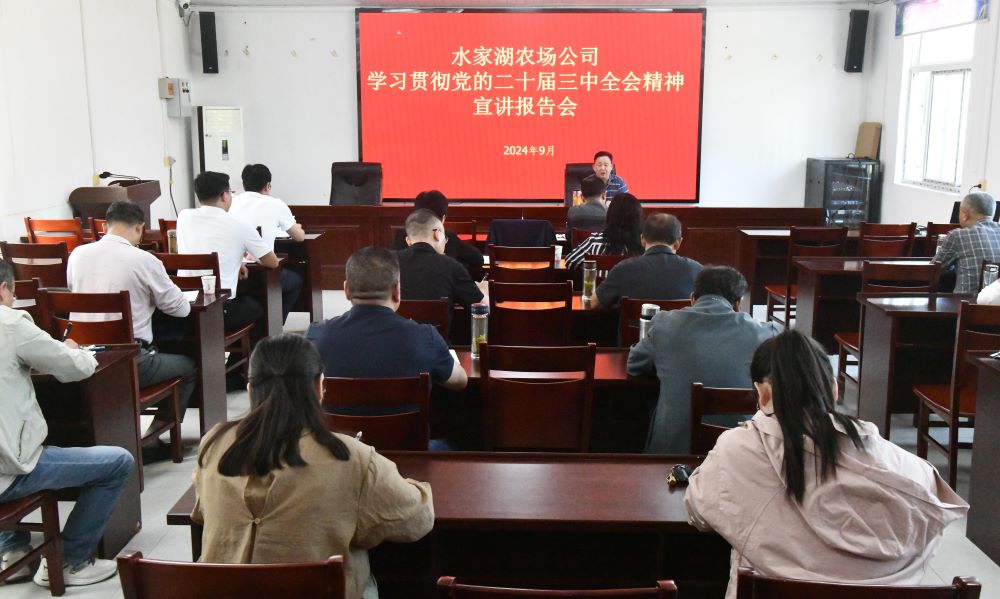 9月24日,农垦集团党委委员、工会主席姜三豹到水家湖农场公司宣讲党的二十届三中全会精神。农场公司党委主要负责同志主持宣讲报告会。集团社会事业部主要负责人、水家湖农场公司领导班子成员、中层管理人员等共30余人参加了宣讲报告会。
