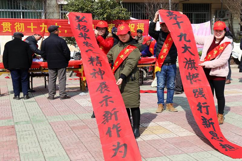 俗话说无联不成春,有联春更浓2018年春节,是党的十九大召开后的第一个新春佳节。农场将学习宣传贯彻十九大精神与传统年俗文化结合起来,以深入贯彻十九大.喜迎新春送祝福为主题,通过书写春联进社区活动,将党的好政策、群众的美好生活向往融入喜庆的春联中,在送上祝福、增添年味的同时,将十九大精神传递到百户千家,进一步营造学习宣传贯彻十九大精神的浓厚氛围。