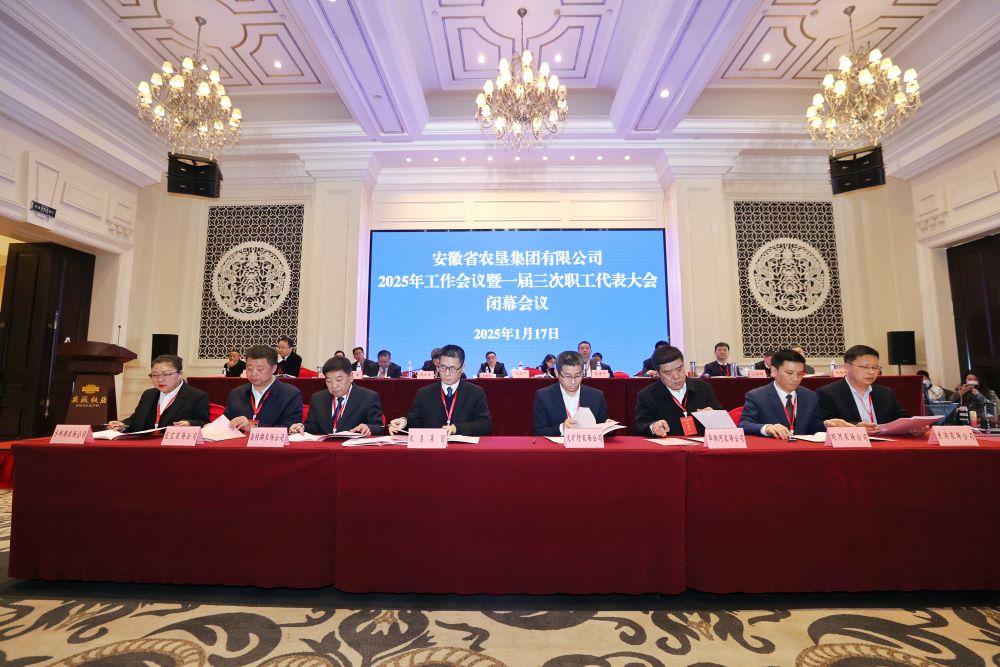 1月17日上午举行的闭幕会上,会议一致通过了《安徽省农垦集团2025年工作会议暨一届三次职工代表大会安徽农垦集团工作报告的决议》。集团公司主要领导分别与二级企业主要负责人签订了2025年企业经营业绩目标责任书。