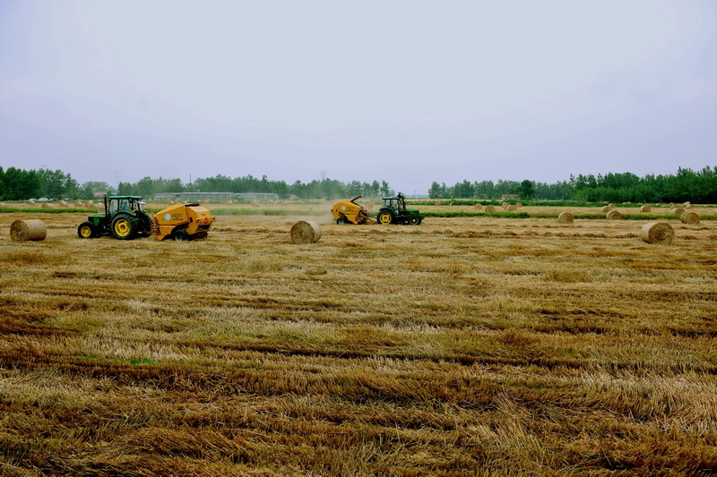 今年麦收以来,安徽农垦各农场建立禁烧工作责任制,小麦秸秆禁烧、还田实现全覆盖。淮南农场对秸秆还田、捡拾打捆给予家庭农场补贴奖励。农场6000亩秸秆还田,12000亩秸秆捡拾打捆,预计小麦秸秆总打捆量可达4.8万吨,补贴奖励总额达90万元。图为淮南农场秸秆打捆作业现场。(经济日报201461216版,鲍广云摄影报道)