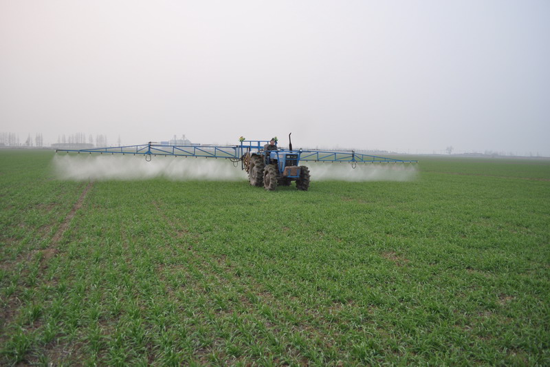 12月6日,在全省最大的小麦良种繁育基地——安徽农垦潘村湖农场,家庭农场职工正在进行化除喷肥作业。眼下沿淮地区冬小麦进入分蘖期,肥水需求旺盛,该农场对3.2万亩小麦种子田全面开展化除喷肥作业,促进小麦壮苗越冬。(安徽日报2013年12月9日头版,杨登宏摄)