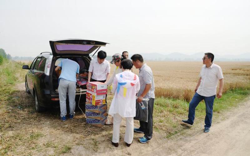 61东风湖农场领导马振辉率班子成员及工会人员,炎夏送清凉麦收田头,慰问正在高温下农忙的职工,带去场党委及工会的关怀,送上矿泉水、毛巾、药品等防暑降温品。