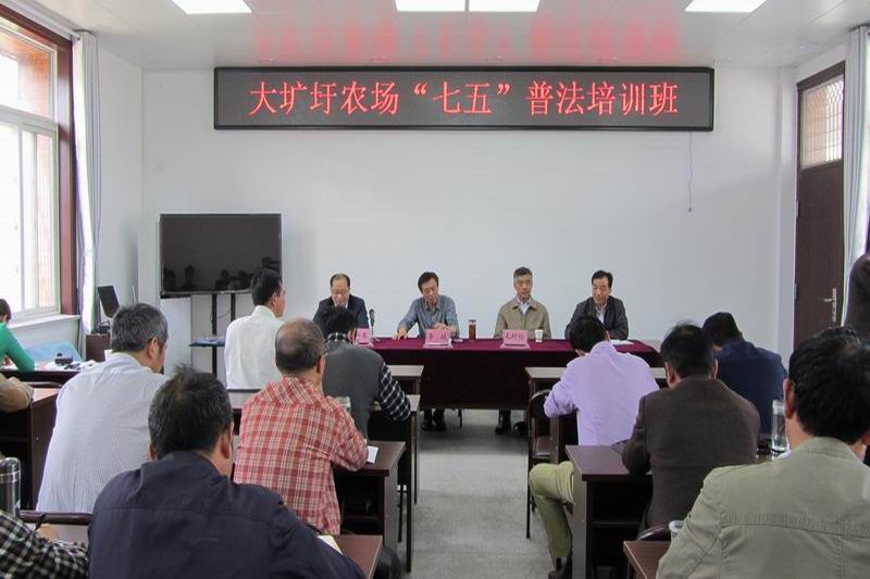 55,大圹圩农场举办七五普法培训班,落实七五普法规划,增强干群法制观念。场领导、普法工作领导小组成员、场属各单位普法信息员、部分职工代表参训学习。