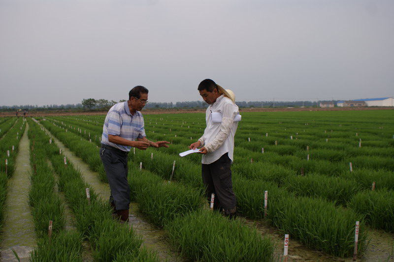 近年来,安徽农垦大圹圩农场通过不断加大科技投入,加强人才引进和与科研单位紧密合作,已有一个优质水稻品种育成并通过省级审定,11个水稻品系进入安徽、江苏等地的区域性试验。今年,该农场农科所试验田夏种的各类水稻育种材料达4700余份,数量较往年有较大幅度的增加。图为著名水稻育种专家、皖垦种业顾问江祺祥(左)在大圹圩农场实地指导水稻育种夏种工作。201378农民日报07,李炳旺、夏庆芳