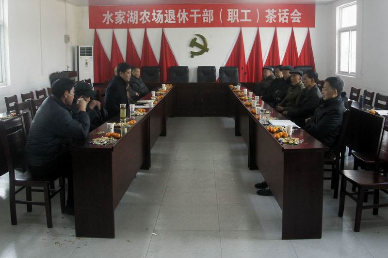 123,水家湖农场党委举办老同志代表迎春茶话会,场领导刘国强、王计文参加座谈并致以新春祝福。
