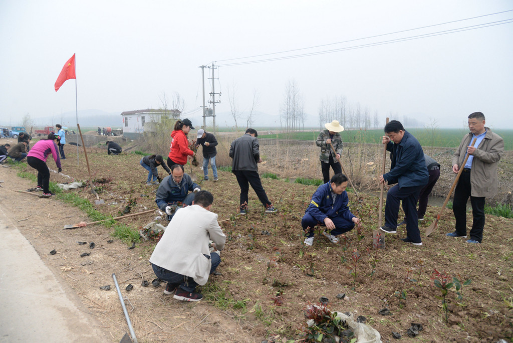 植树现场一片繁忙景象,公司领导带头干,党员干部争相干,大家分工合作,挥锹铲土、扶苗填坑、踏土夯苗,合力栽下一株株树苗。经过两天的劳动,共种红叶石楠和桂花树苗共二万余株。一株株新栽种的树苗迎风挺立,呈现出一片生机盎然的景象。(王晨龙)