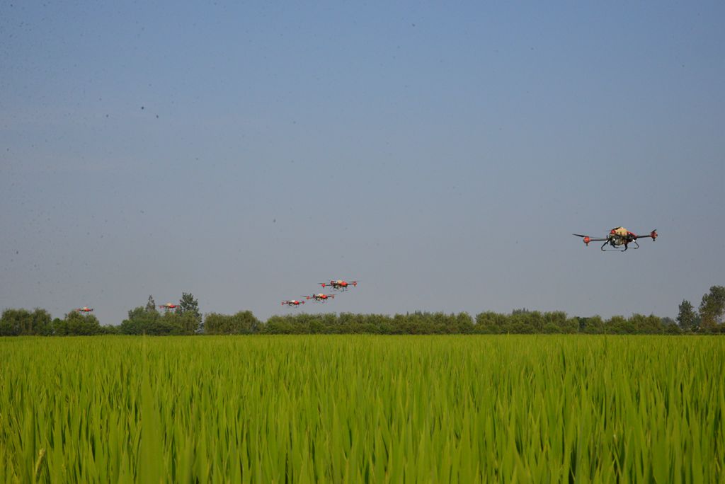 2018年,农场公司引进12台植保无人机,该型号无人机具有“仿地飞行,精准避障,一控多机,夜间作业”四大功能,彻底改变了农场公司传统繁重的植保作业方式。