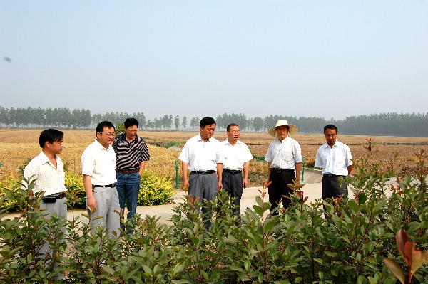 628,江苏淮安九洲园林建设工程有限公司陈君总经理率技术部门负责人一行来潘村湖农场考察景观苗木生产情况、洽谈合作建设苗木基地事宜。场领导韩大鸣、林贤传与有关部门负责人陪同考察。