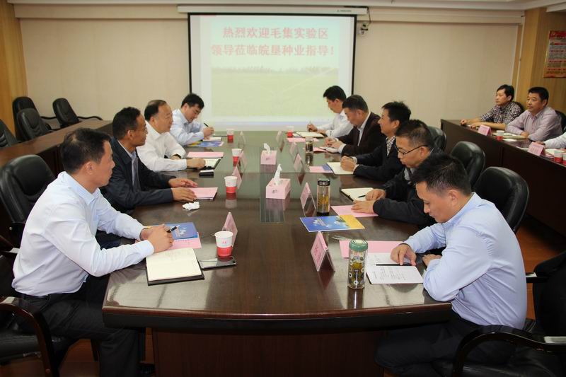 1018,安徽农垦集团党委委员、皖垦种业总经理王占廷与到访的淮南市毛集实验区工委书记赵期中、副书记管恒川举行合作会晤。皖垦种业经营层及毛集分公司负责人和毛集实验区招商局、经开区领导参加对接。