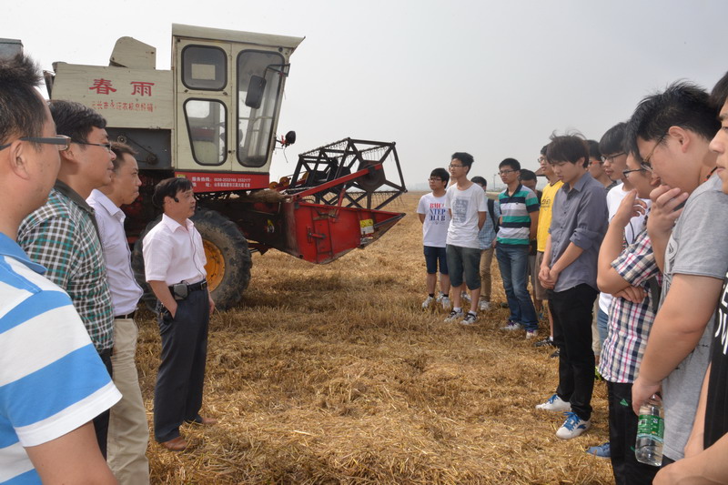 总农艺师童俊带领扬大师生到小麦收割和粮食烘干现场,实地观摩了农机麦收作业和粮食烘干流程,童俊介绍了农场基本概况及农机装备、秸秆粉碎、旋耕灭茬、种子烘干等情况。扬大师生对农场较高的机械化水平、规范化的管理模式给予好评,并表示,通过现场观摩,学到了许多书本上学不到的知识,对农业机械化有了更具体更直观的了解,受益良多,不虚此行。(王菲)