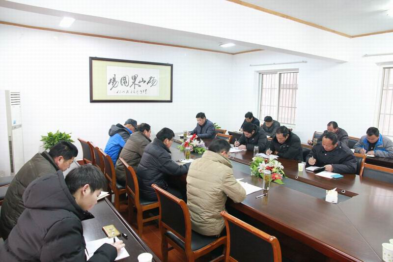131,砀山果园场副场长钱超主持召开专题会,研究谋划和提早布置2018年生产各项工作,全场生产技术人员参会。