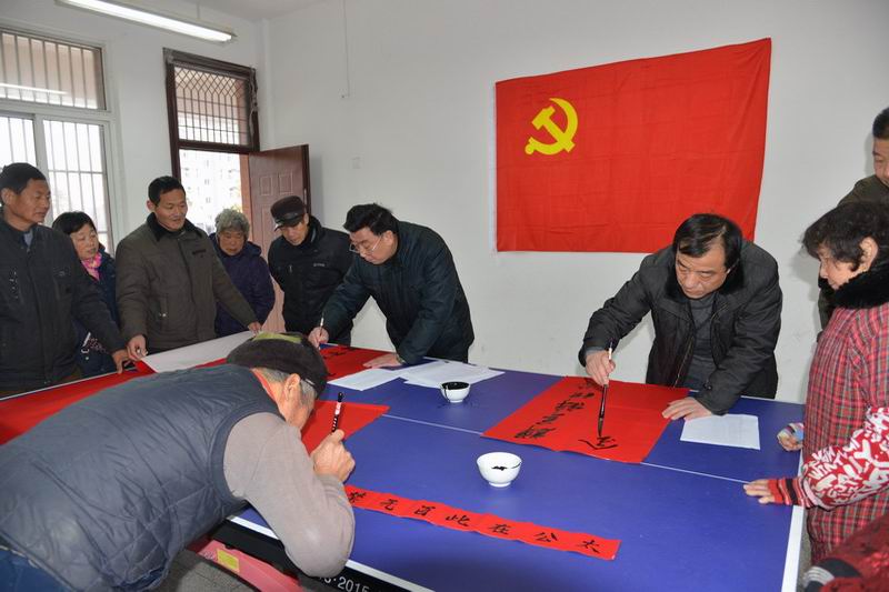 羊年岁末,申猴将至。129,大圹圩农场党委举办了迎新春送春联活动。场领导施广庆、杨朝幸及机关、社区党支部的党员书法爱好者挥毫泼墨,为社区居民们义务书写春联、送去新年祝福。