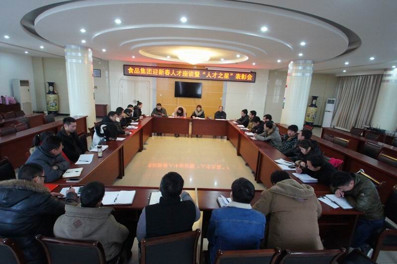 122,皖垦食品集团举行迎新春人才座谈暨人才之星表彰会,党委副书记王戴群到会作讲话,人力资源部负责人和2006年以来到场就业的30多名大学生参加座谈。