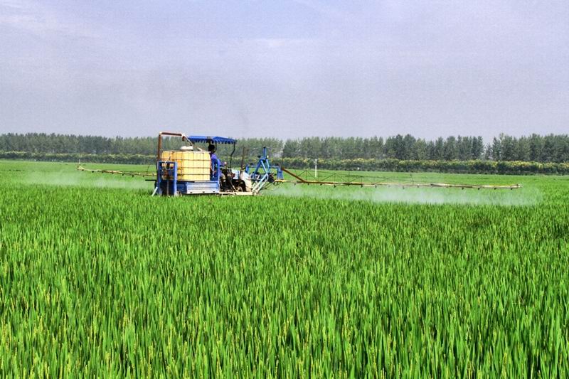 图为:农业七分场一家庭农场利用高地隙植保机开展田管作业。(李峰)
