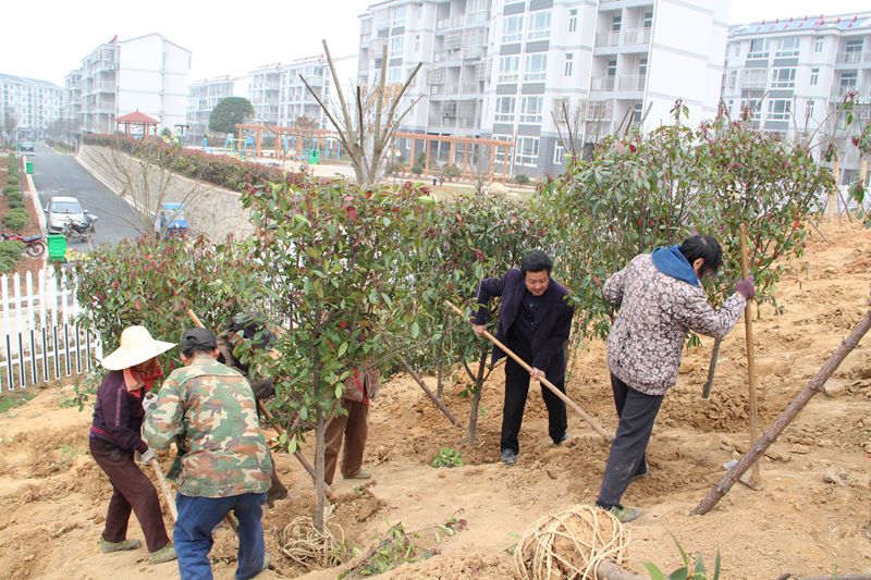 321,十字铺茶场组织机关干部和职工群众,集体到场部绿魁花园东区开展绿化家园完善提升行动,栽种香樟、红叶石楠等苗木100余株。