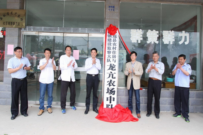 57,怀远县农村住房与村镇建设监察大队龙亢农场中队在社管委牌成立,副场长马振辉、县住建局和农场行政执法分局负责人到场祝贺。