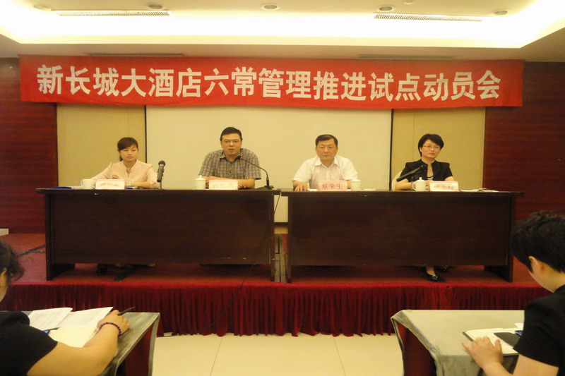 会上,酒店集团综合办主任袁春燕给参会员工系统讲解了六常管理知识,并提出了第一阶段创建目标任务和培训计划安排。张亿勇在讲话时要求,新长城团队要继续发扬创新精神和敬业精神,努力创建“六常管理样板酒店”,随后代表酒店集团与蔡荣生、徐玉玲签订了《责任状》并现场缴纳了保证金。该酒店各部门负责人表示,要以身作则推进六常管理试点工作。