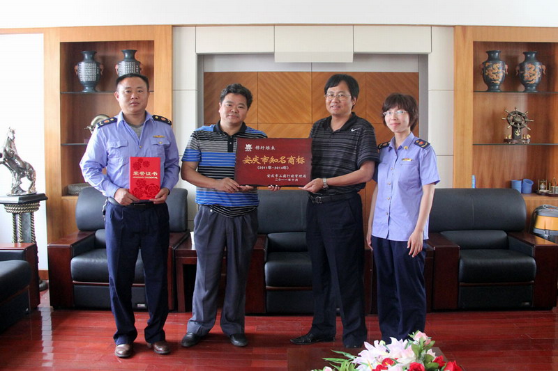 531,受安庆市工商局委托,宿松县工商局副局长程俊一行来到华阳河农场,为皖垦棉业有限公司颁发华阳河牌皮棉被认定为安庆市知名商标的牌匾证书。农场副场长、皖垦棉业副总经理黄树军等参加了授牌仪式。