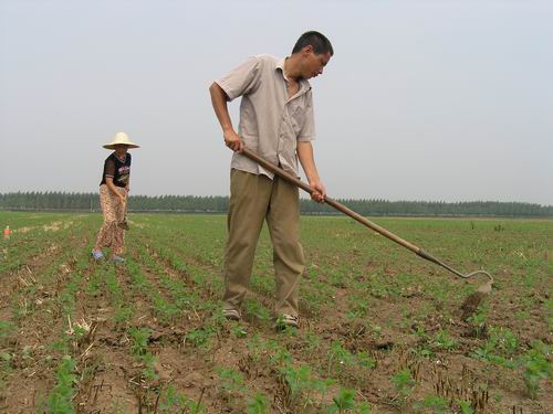 6月27日上午,潘村湖农场二分场职工崔怀芳正和爱人一起在责任田挥锄松土间苗。连日来,潘村湖农场广大家庭农场职工趁早晚凉爽时段抓紧做好夏季作物田间管理工作。针对近期雨水较多的情况,家庭农场职工及时做好清沟沥水降渍防涝工作;对田间断垄地段及时补苗,对群体过大的地块进行疏苗间苗,做到合理密植,为再夺秋粮丰收奠定基础。(杨登宏)