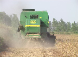 金桂迎秋,瓜果飘香。经过一个夏季的辛勤耕耘、精心管理,夹沟农场万余亩大豆棵棵舒展着饱满的豆荚,处处散溢着成熟的豆香,大地呈现出一派丰收的景象。秋分刚过,夹沟农场便迎来了果实累累的秋收时节。预计平均单产将突破150公斤。这其中既有“天帮忙”的因素,更有“人努力”的付出。豆苗期,两次排涝降渍,才确保了一色全苗;结荚期,多次防病治虫和根外喷肥,才保证了后期的正常生长。今年大豆的高产,是全面落实科技措施的结果,是全程组织化管理的结果,是及时抗灾防灾的结果。晴好的天气,高昂的士气,将大大加快秋收进度,十月初全面结束2006年秋收工作。