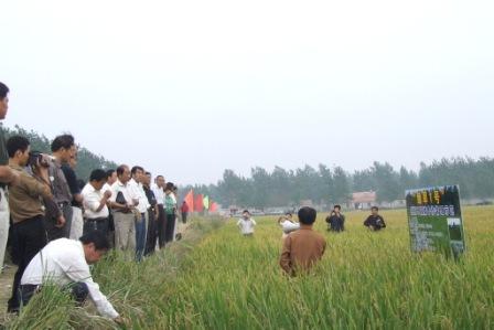 9月26日,国审水旱两用稻----“绿旱一号”机械旱直播生产示范现场观摩会在龙亢农场举行。“绿旱一号”育种人朱启升研究员、安徽省各地市县的水稻专家和农技人员70多人参加了现场观摩会。