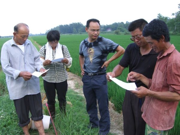 7月25日对于植保站的年轻人来说是最繁忙的一天,上午8点,程大强专门从安庆市请来植保专家向农户面授机宜,指导稻纵卷叶螟的防治秘诀。当天野外温度达到40℃,中午1点30分左右,仍有不少农户拽着程大强们不松手,拉着他们到稻田里察看虫情。下午4点左右,他又接到来自杨树分场种粮大户李泽光的求援电话,于是,程大强又开着摩托车一溜烟赶到外李泽光的田里“诊断”病虫害,当即为他开出了药方,并叮嘱他按时、按剂量配药和喷施。直到天黑,程大强才一身风尘的赶回家中。