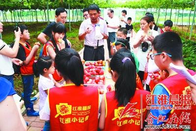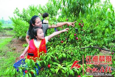 一片片桃林,挂满了红彤彤的果子,刚下过雨,空气里一股甜丝丝的桃香。610日上午,位于合肥市蜀山区南岗镇的安徽农垦南丽湾生态园,迎来了20组江淮小记者家庭来采摘桃子。大家品尝桃子,学习知识,活动结束了还不愿离去。简直是乐不思蜀了。一位小记者家长看着孩子玩得开心,忍不住这样说道。