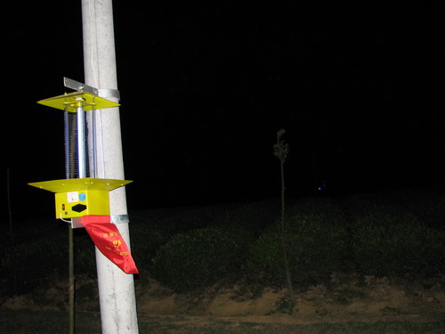 宣郎广茶业总公司加强示范茶园建设,积极做好示范区茶园病虫害防治工作,改善环境,采取多种形式,科学防治病虫害。今年投资近5万元购买诱蛾灯,于5月上旬,在示范茶园成排安装,进行灯光诱蛾物理防治茶园虫害,效果明显。