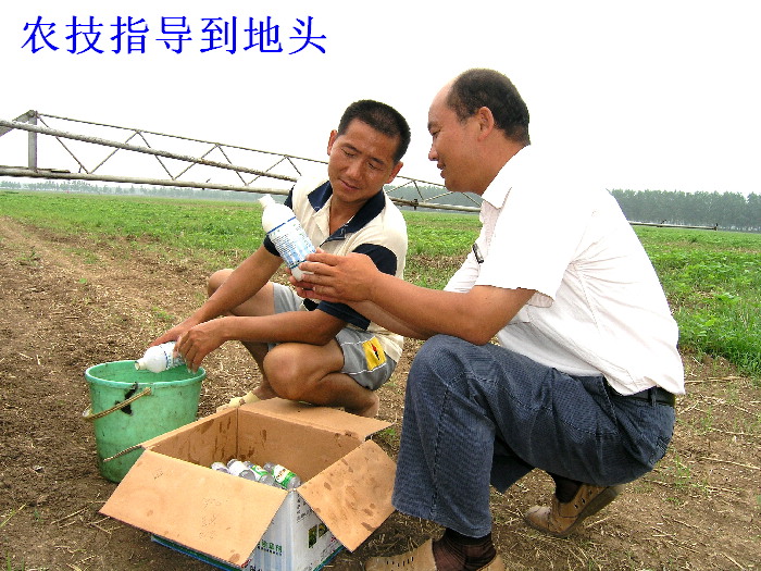 7月11日上午,在潘村湖农场第二管理区一块大田,薛兵家庭农场正在农技人员的指导下对大豆进行化学除草。