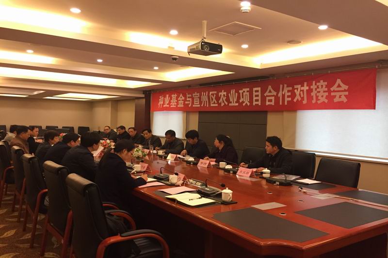313,安徽种业基金与宣州区农业项目合作对接会在合肥举行。农垦集团总会计师、现代农业创投公司董事长高有荣,总经理陈军、常务副总朱有才,宣州区人大副主任王光祥副区长陶晓海、洪林现代农业示范园主任阮润生出席。省财政厅农业处种业基金联络员王剑应邀到会指导。