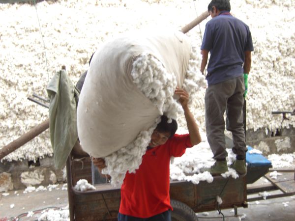 10月24日,皖河农场一棉农在当地轧花厂交售新棉。今年与往年不一样,农场5000多棉农全部种的是享受良种补贴的 “高效棉”,全场2万多亩棉花共补贴30万元的良种。虽然结铃期受阴雨天气影响,产量略有下降,但由于享受种子补贴,加上棉价上扬,对于该场棉农来说,今年仍然是节本增效的丰收年。(王洪    摄影报道)