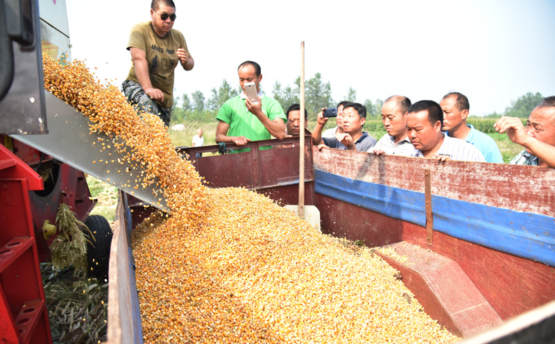 827,夹沟农场在农业科技园举办了玉米籽粒机收现场会。场领导及农技人员、种粮大户、周边农户和收割机厂方代表共110多人参加。