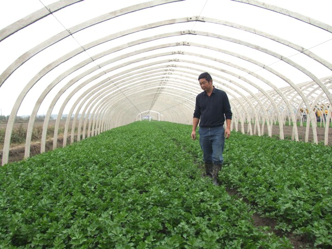 深秋,龙亢农场五分场职工柏树棵自建的蔬菜大棚里,西芹长势旺盛、郁郁葱葱,呈现出一派生机盎然的景色。今年秋季,柏树棵在农场优惠政策的扶持下,投资8万元建设了7亩水泥架构的蔬菜大棚,大棚内栽培的西芹亩产可达